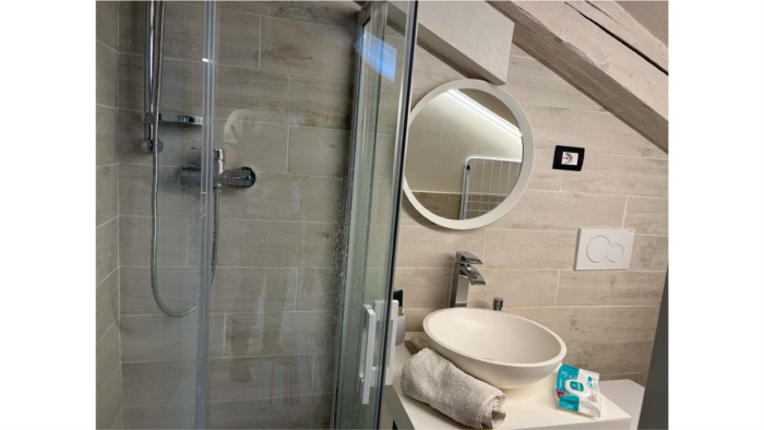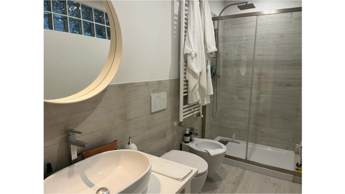 Appartamento composto da : corridoio, cucina abitabile, soggiorno, 2 camere matrimoniali e 2 bagni.